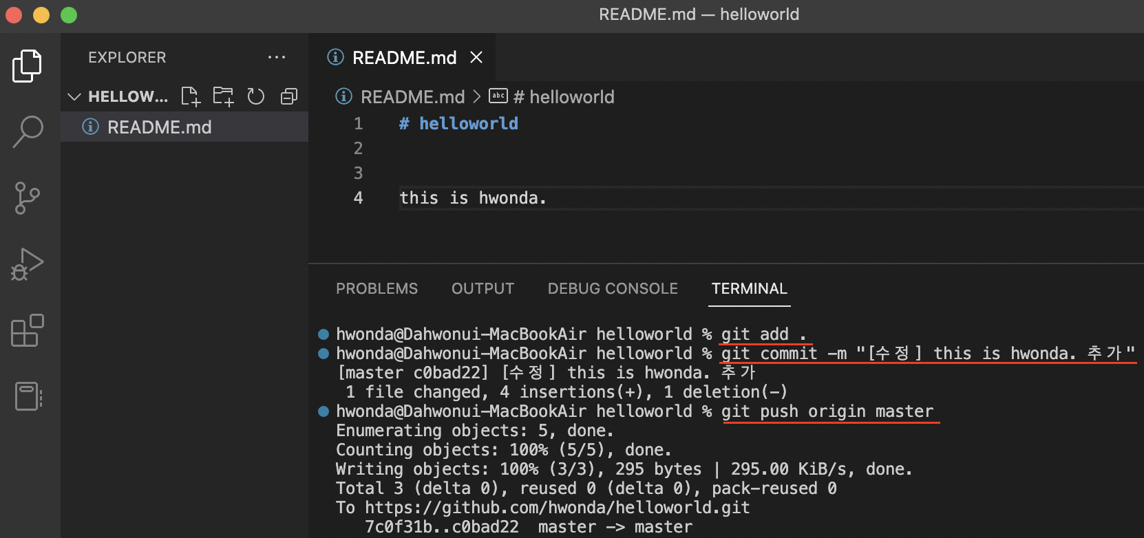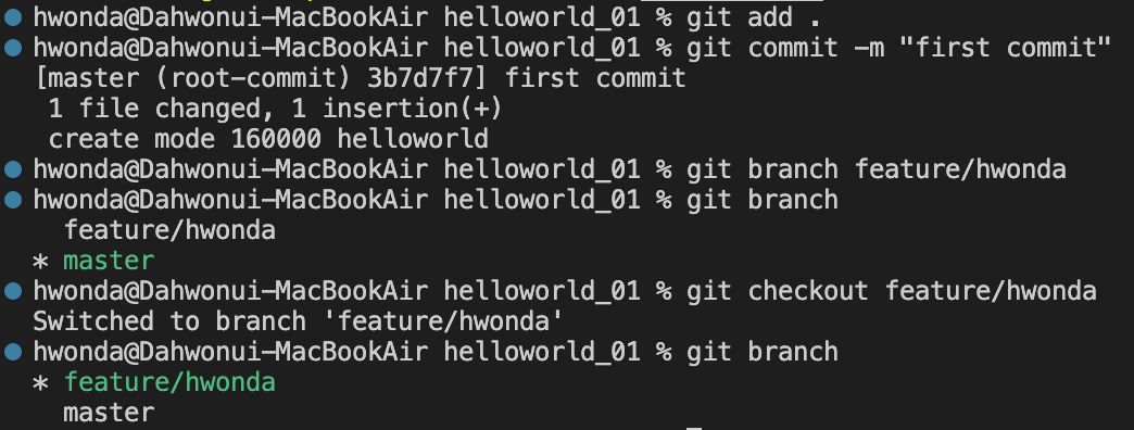 | git clone | 원격 리파지토리를 그대로 복붙한다(copy). | X | O | X | 프로젝트 시작 시 |