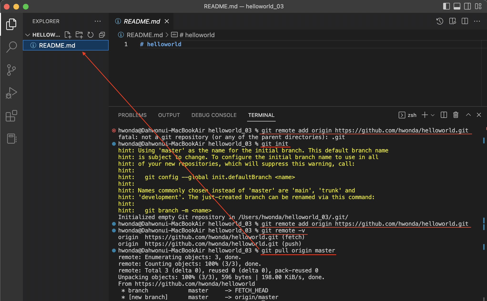 ▽ git pull의 형식은 다음과 같습니다.