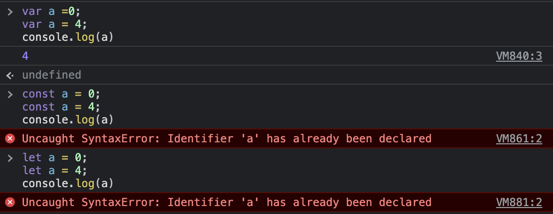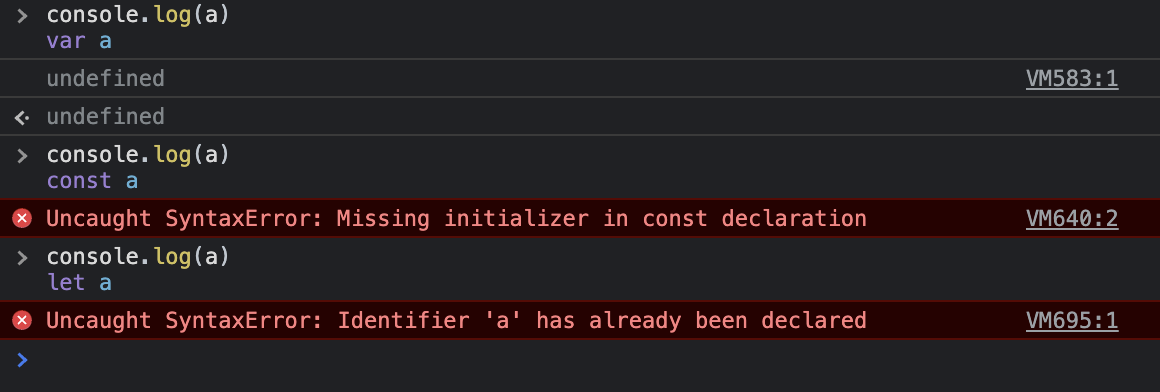 console.log(two); // Uncaught ReferenceError: b is not defined